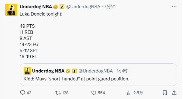 2025-10-25 16:34:50基德说独行侠缺控卫!美媒回复:东契奇今天砍下49+11+8