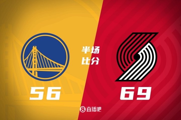 半场-杨瀚森出场3分半钟1板1失误 库里24分 开拓者69-56领先勇士