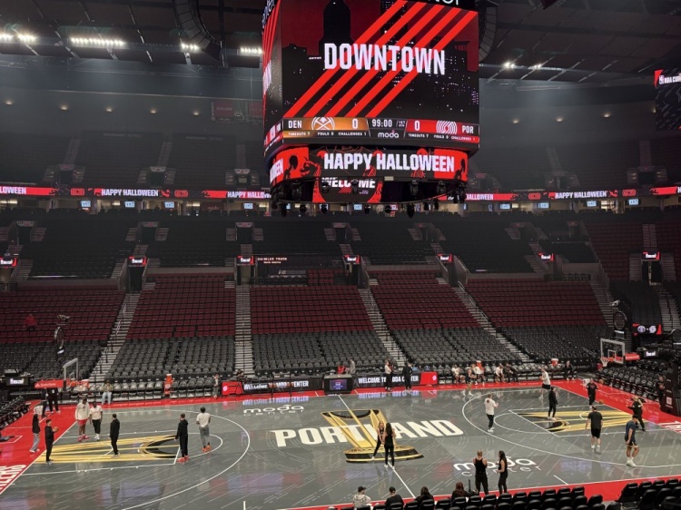 2025-11-01 18:03:59新赛季NBA杯首战遇上万圣节!开拓者队记晒球队主场地板