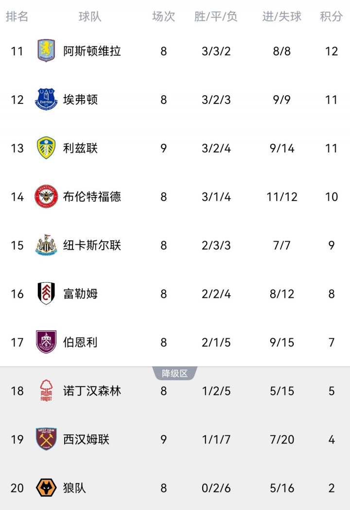 但在努诺接手西汉姆之后,球队1平3负依然未尝胜绩,目前积4分暂时排在英超倒二,如果狼队本轮取胜,西汉姆就将掉到倒一的位置。