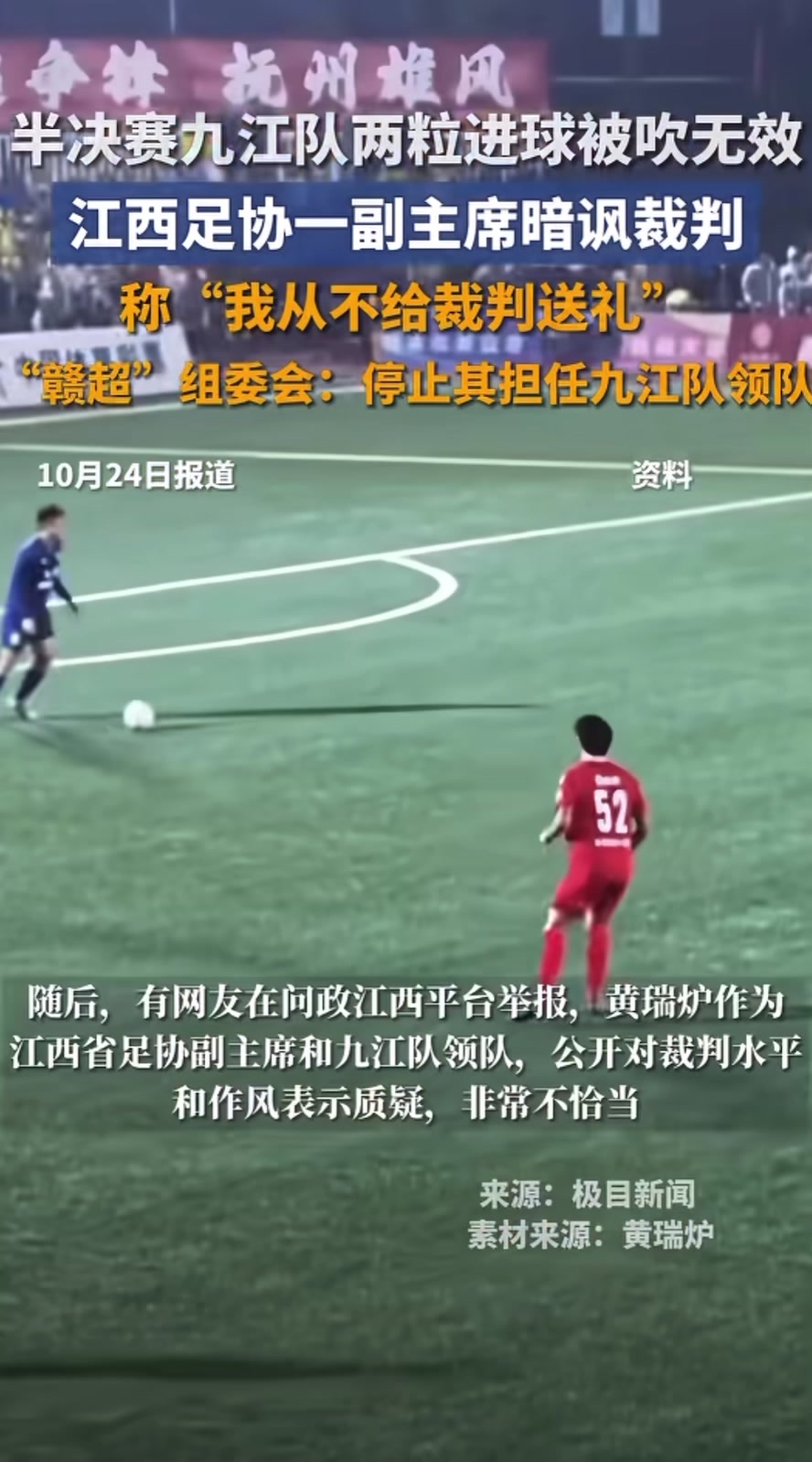 2025-10-25 16:02:15赣超半决赛赛后炮轰裁判,江西省足协副主席、九江队领队被处罚