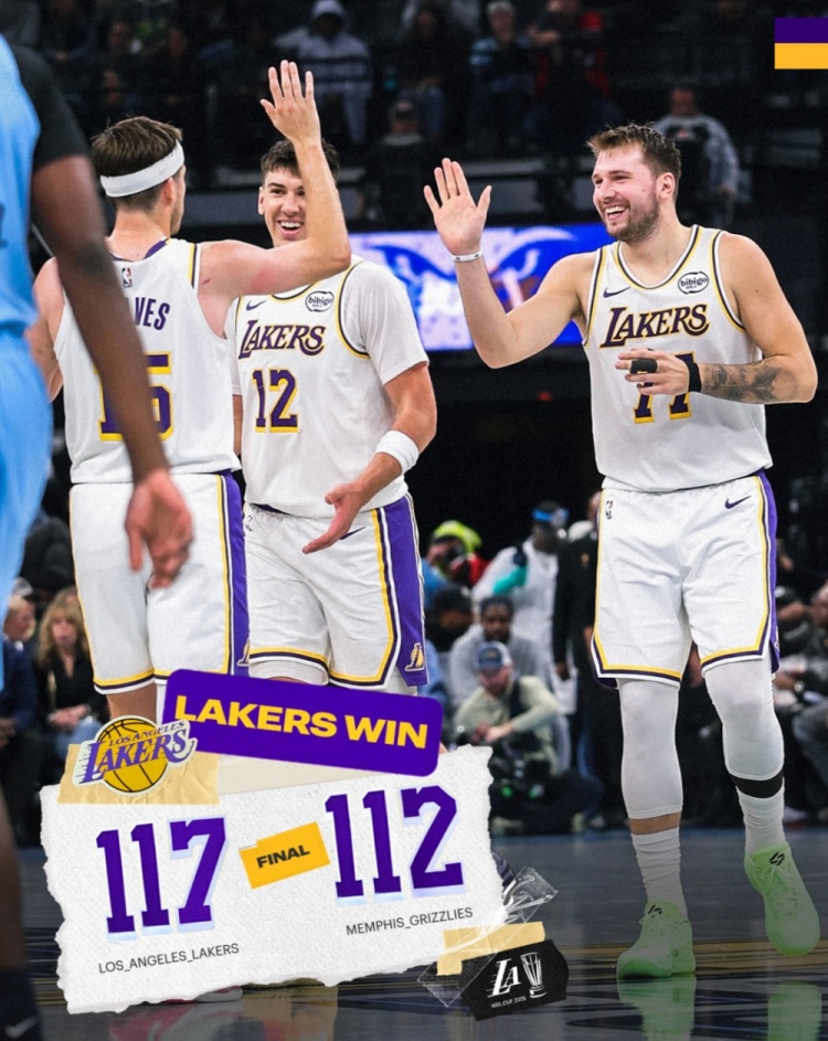 2025-11-01 17:10:16NBA杯小组赛首胜!湖人官方海报:东契奇里夫斯击掌庆祝