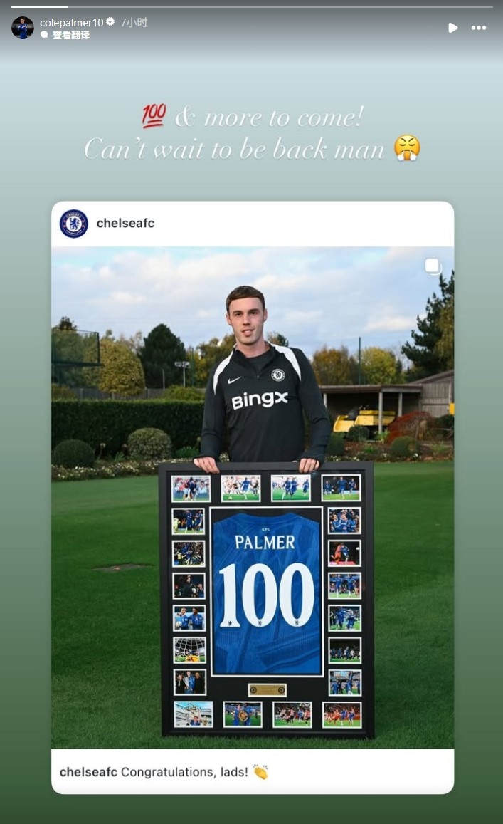 2025-10-29 16:05:35帕尔默晒切尔西百场球衣:接下来还有更多,等不及回归了!