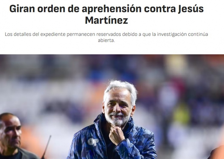 10月29日讯 据《阿斯报》报道,墨西哥城法官已对皇家奥维耶多老板,同时也是帕丘卡主席的赫苏斯-马丁内斯发出了逮捕令。